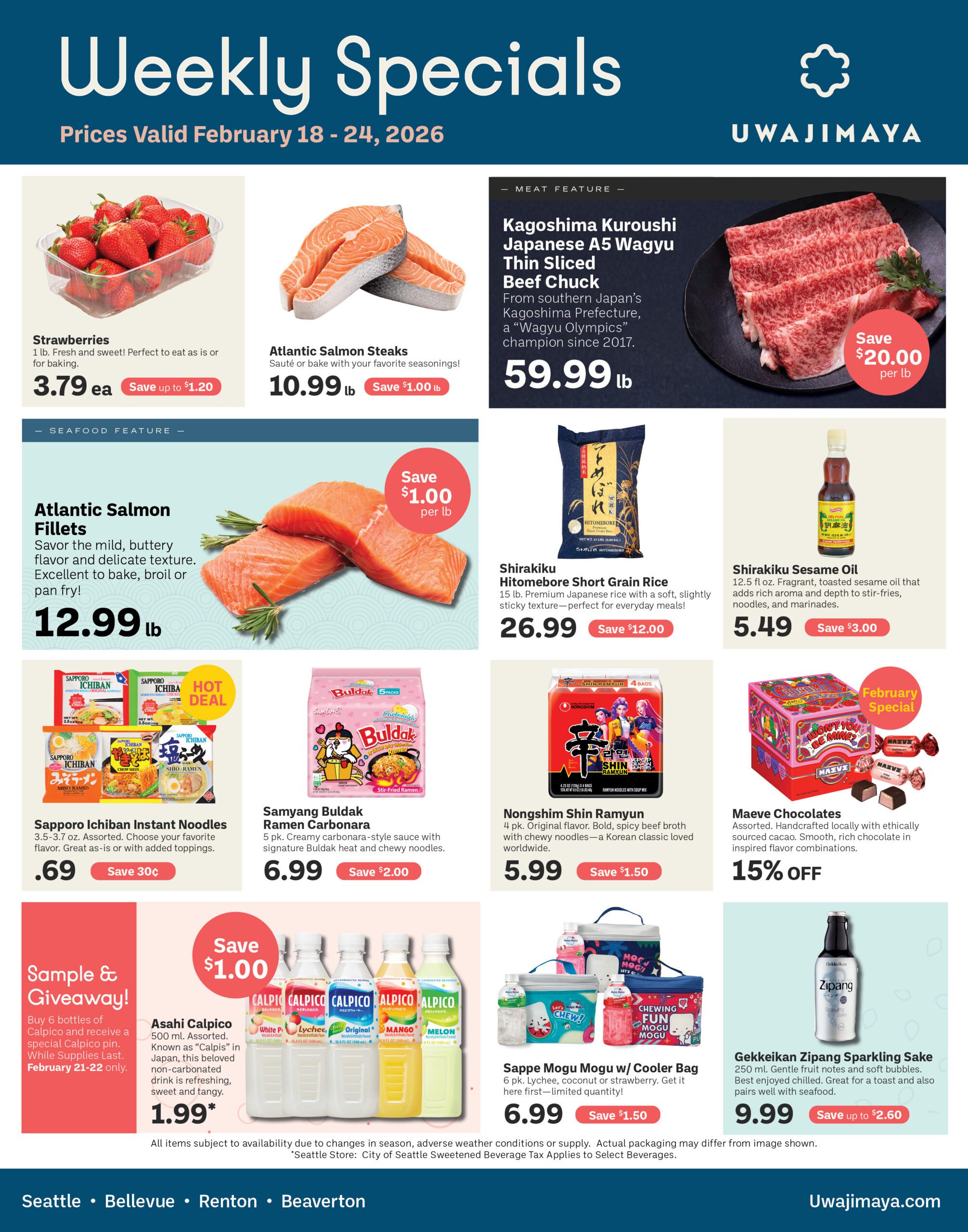 Weekly Specials See what’s on special this week! Download PDF Right Follow Along on Our Instagram! @uwajimaya Happy Lunar New Year from all of us at Uwajimaya! Thank you to everyone who celebrated Lunar New Yea Two new sweet reasons to stop by the deli ๐๐ Which Curious about pummelos? ๐โจ Theyโre a sweet, mild c Yum! Yum! Yum! Related Recipes View All Recipes Right Chinese Hot Pot November 3, 2025 Japanese Tartar Sauce February 6, 2025 SPAM Rice Crispy Treats SPAM Sliders We Believe a Team of Individuals with Diverse Backgrounds and Experiences Working Together Powers Our Success. Apply Now Right