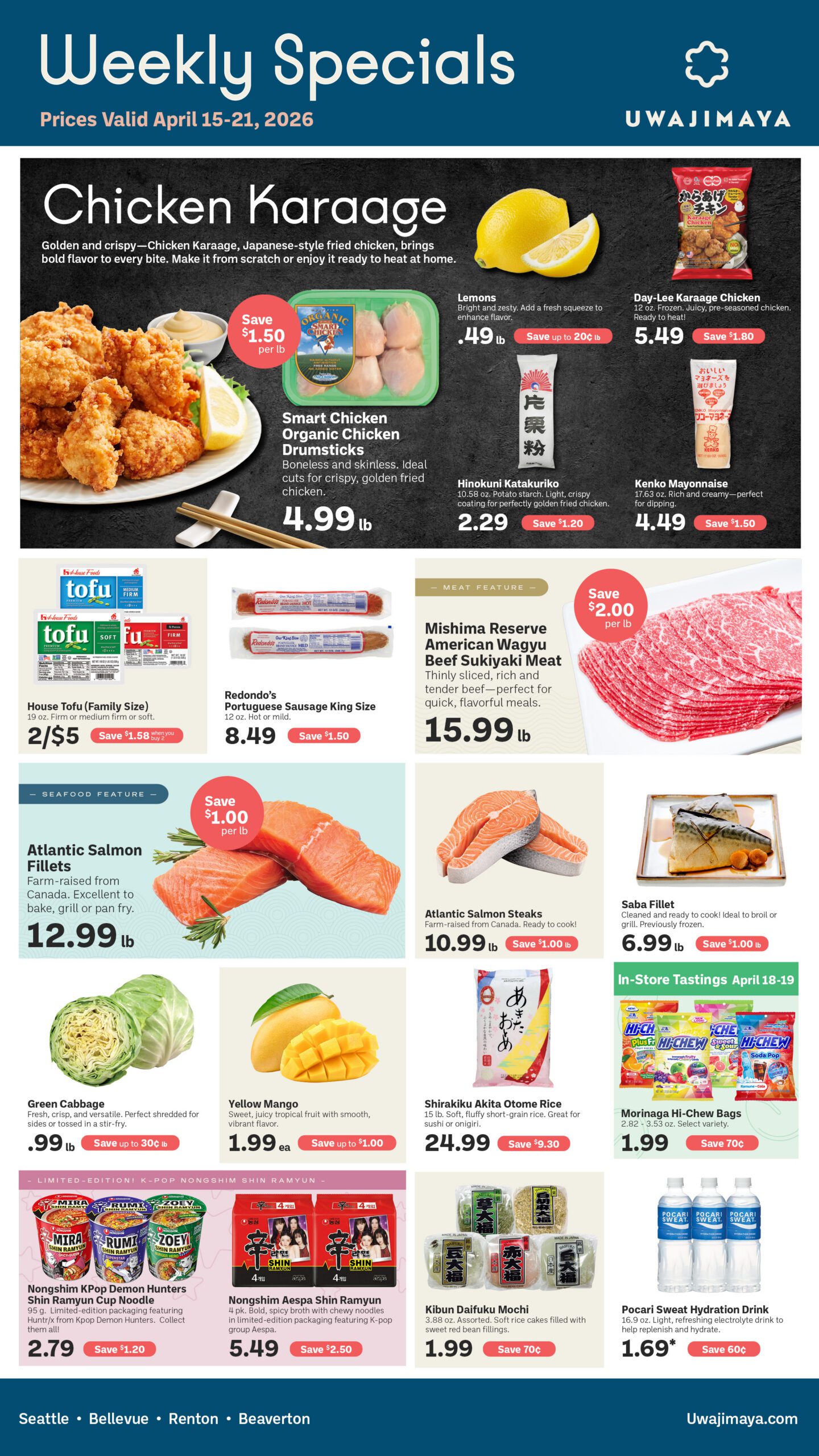 Weekly Specials See what’s on special this week! Download PDF Right Follow Along on Our Instagram! @uwajimaya How many bowls can you get from a 10 lb bag of ric How many veggies can you fit for $2.99? 🥕🥔 Join u Simple, comforting, and irresistibly delicious, Ya This Japanese mascara is viral for a reason 💙 Hav Yum! Yum! Yum! Related Recipes View All Recipes Right Chinese Hot Pot November 3, 2025 Japanese Tartar Sauce February 6, 2025 SPAM Rice Crispy Treats SPAM Sliders We Believe a Team of Individuals with Diverse Backgrounds and Experiences Working Together Powers Our Success. Apply Now Right